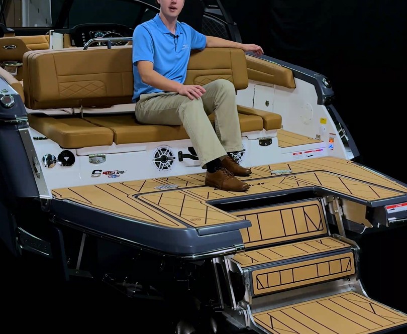 The GTS series represents the next generation of the Surf series, offering enhanced multi-sport capabilities along with the performance that Chaparral is known for. Equipped with the GT Surf system, these boats feature customizable wake and wave generation technologies, which include Malibu Surf Gates and a touchscreen display to manage your rider's settings. Designed with safety in mind for swimmers and watersports enthusiasts, the GTS 6 is powered by a forward-facing drive and boasts a spacious cockpit with plenty of storage.